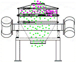 直排式振動篩利用振動電機利用其軸上下端的兩組偏心塊(不平衡偏心塊)的相位角以及兩臺電機之間的交叉角度將振動電機的旋轉運動變為水平、垂直、傾斜以及離心作用的多作用力重疊,再將這種作用力傳遞給篩面,從而達到篩分的目的。改變上下偏心塊的相位角和重量,可以改變激振力的大小和物料的運動軌跡。